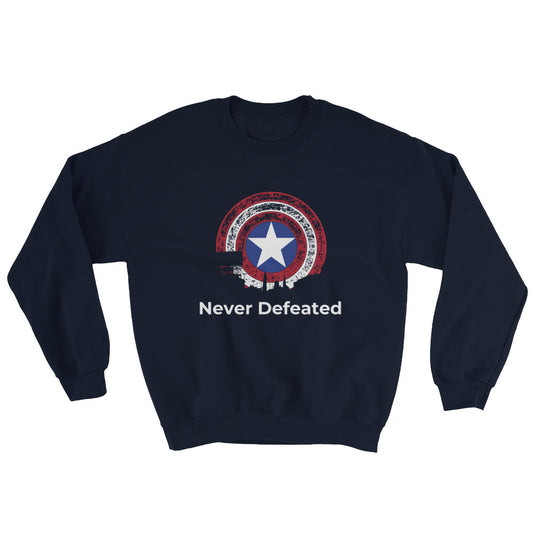 Add some black or blue to your off-duty wardrobe with this sweatshirt. Never Defeated is always a slogan every hero wants to represent and makes for a perfect fit.Beautiful in texture, this strong ...